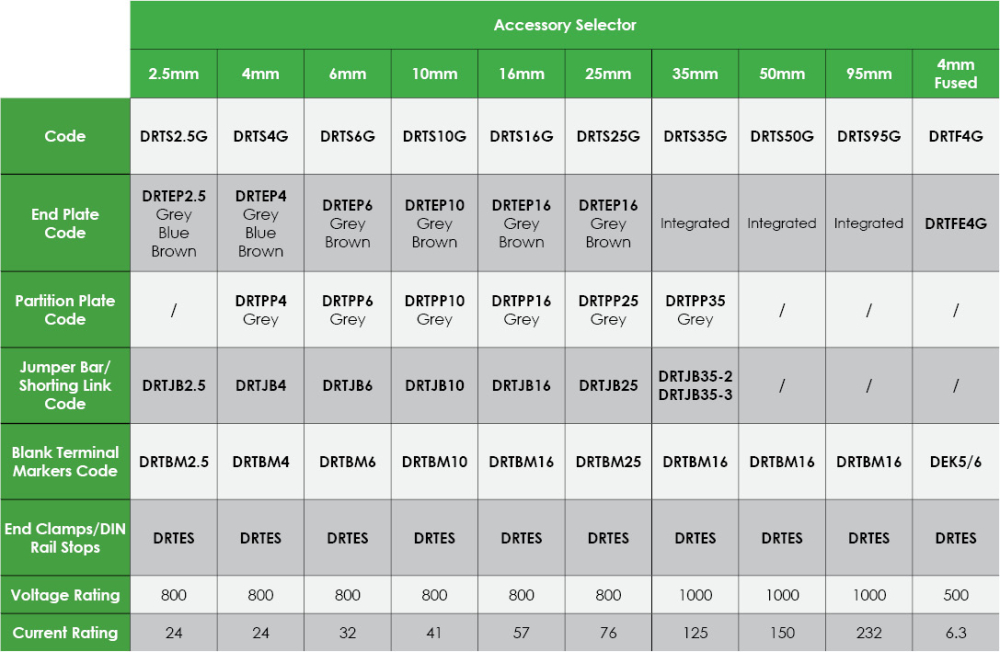 End plates shield the exposed components of the final terminal block, ensuring the unit is protected against accidental contact