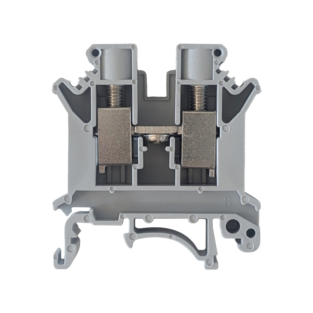 Grey 6mm screw-clamp terminals for DIN-rail installation allow swift fitting and removal while ensuring secure, user-friendly connections. They accommodate a broad spectrum of conductor cross-sections and wire types and accept both ferruled and non-ferruled conductors.