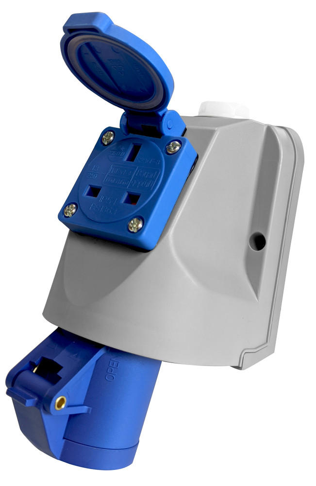 240V - 16A Wall Socket with integrated 3 Pin 13A Socket (Conform to EN60309)