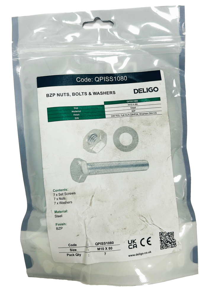 BZP Nuts, Bolts and Washers 10 x 80mm (Pack of 7)