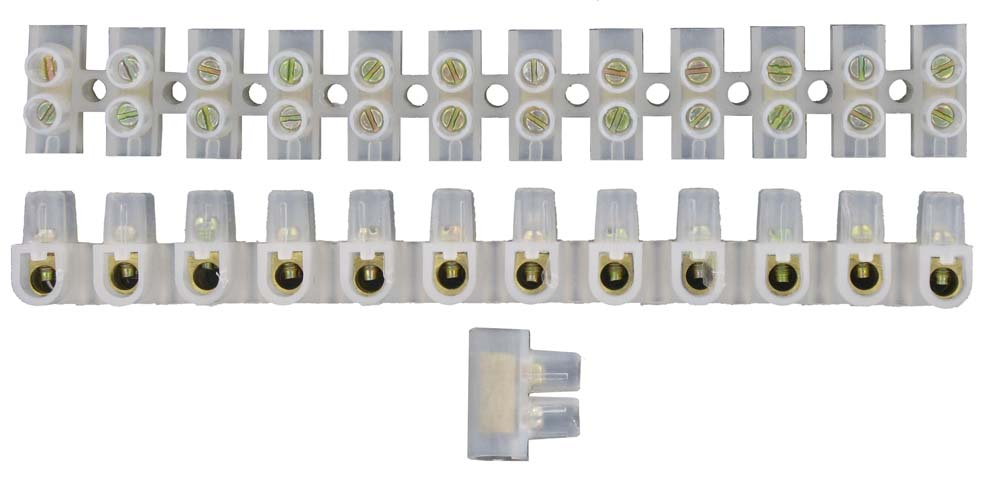 These 5A strip connectors conform to BS EN 60998-1 and feature a natural-colour polyethylene body with a brass insert for secure, reliable electrical connections.