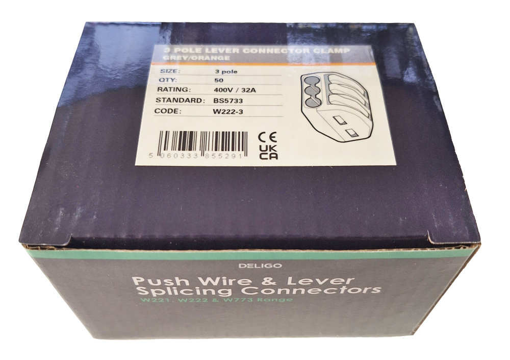 Available in 2, 3 or 5 conducting levered terminal blocks